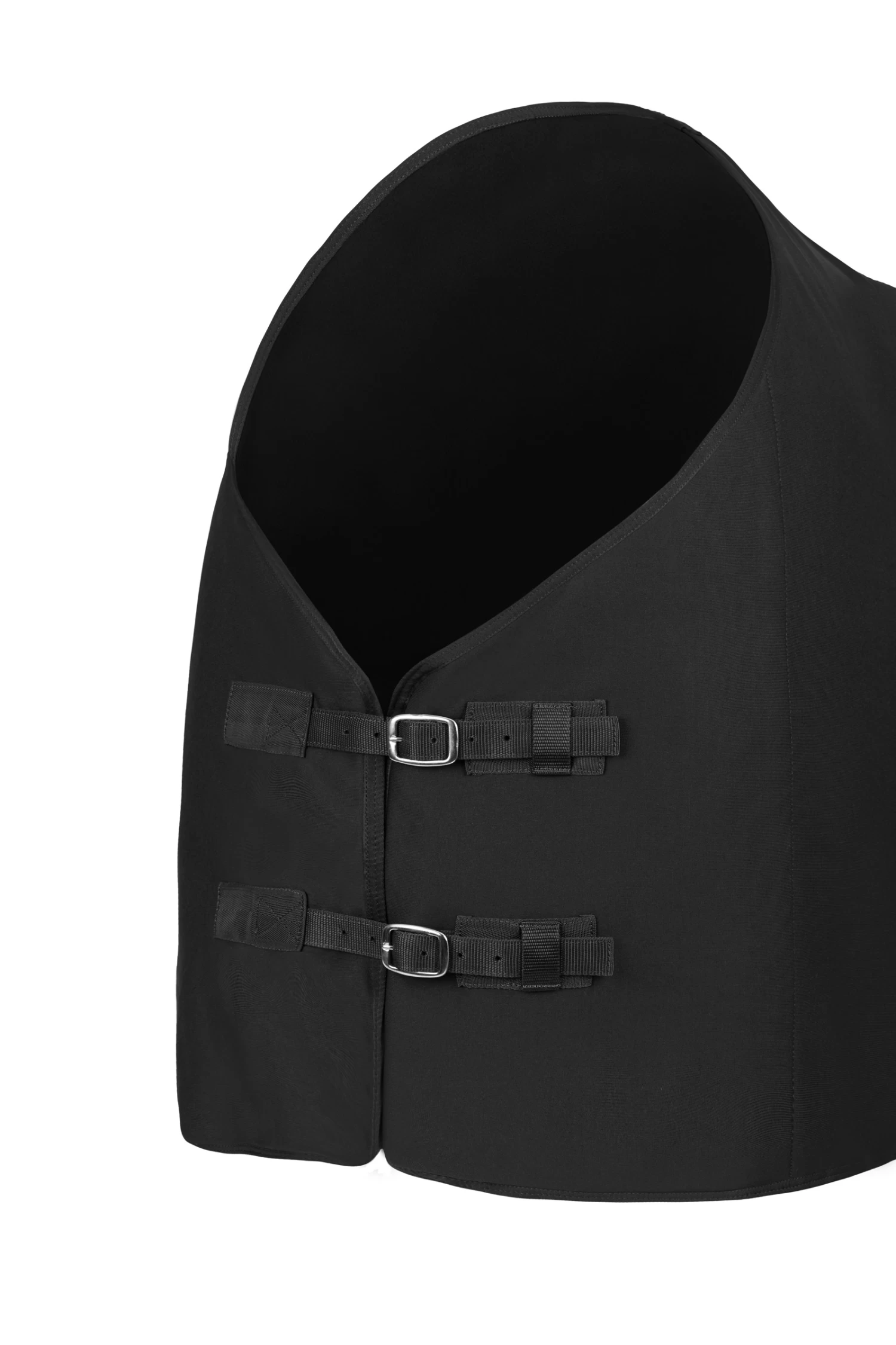 Eine schöne Abschwitzdecke, perfekt nach schweißtreibenden Trainingseinheiten, um die Feuchtigkeit abzuleiten, bevor du dein Pferd eindeckst oder abpflegst. Die weiche Kunstfellpolsterung am Widerrist vermeidet Scheuerstellen an dieser empfindlichen Stelle. Die verstellbaren Kreuzgurte und die vorderen Verschlüsse sorgen für eine perfekte Passform und halten die Decke an ihrem Platz. Die Karabiner am vorderen Verschluss erleichtern das schnelle Schließen und Öffnen, sobald du die Schnalle auf die richtige Passform eingestellt hast.