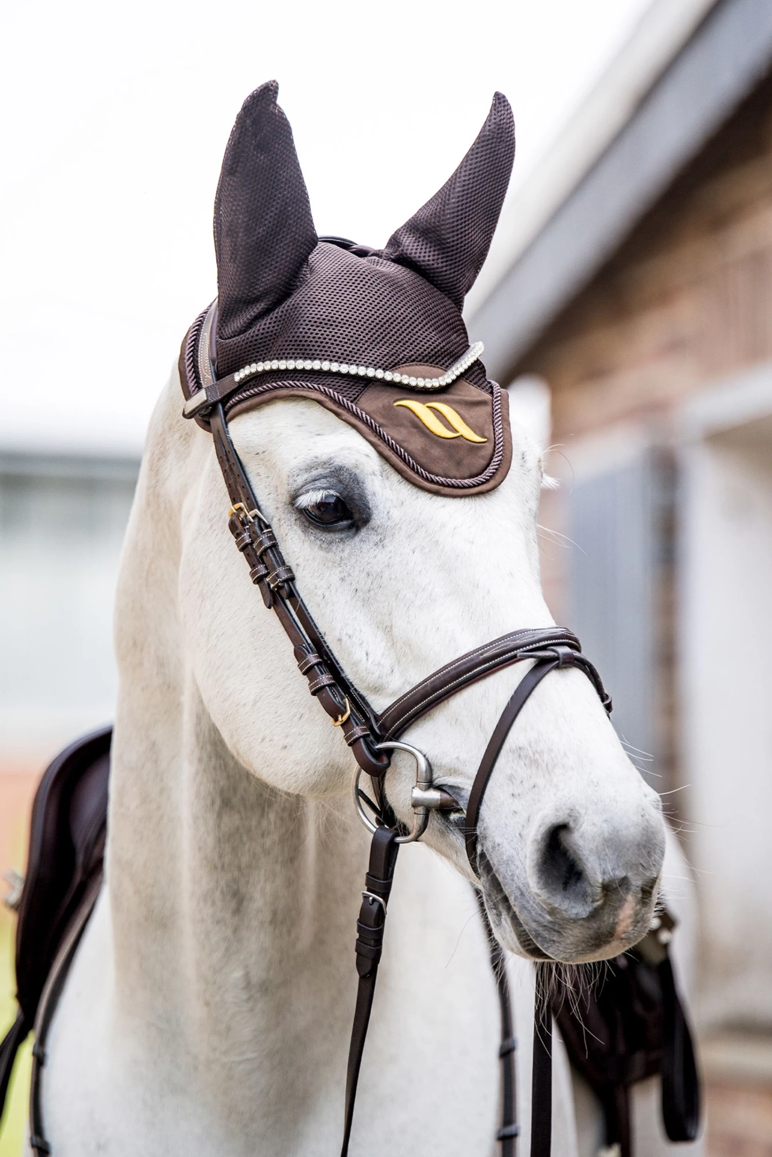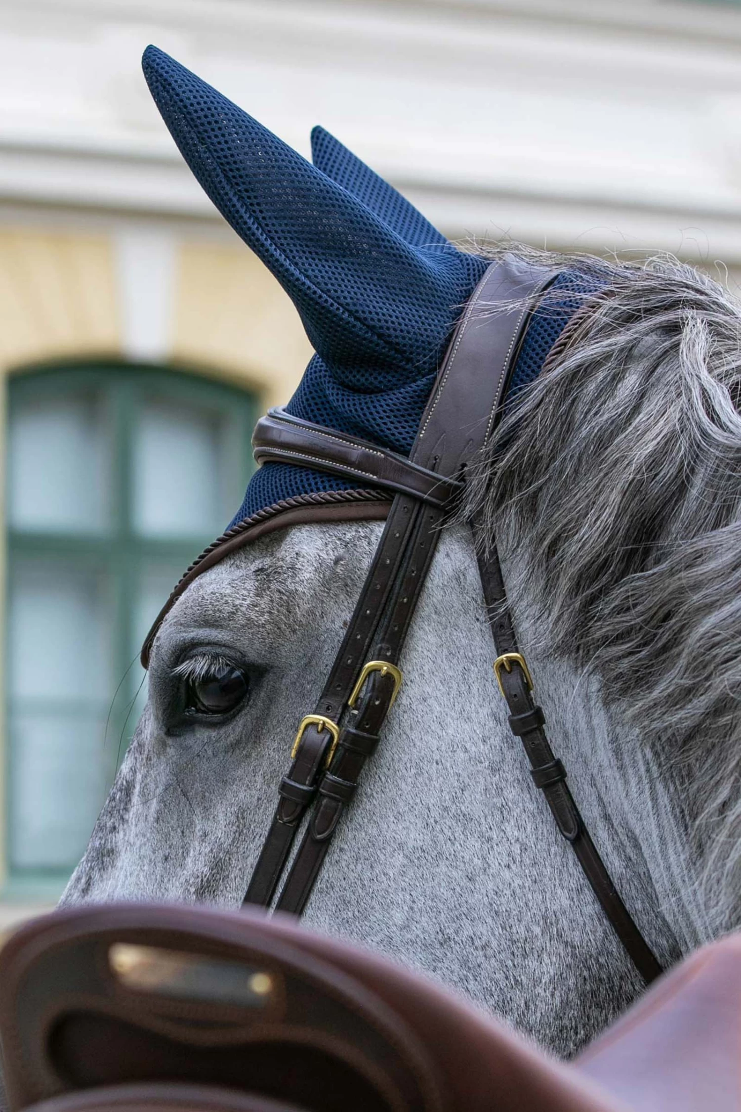 Back on Track’s luftigste Fliegenhaube aller Zeiten! Mit Mesh über Ohren und Kopf kann die Luft maximal zirkulieren. Das Material ist hoch atmungsaktiv und feuchtigkeitsableitend. Es ist leicht und elastisch, um einen guten Sitz um die Ohren zu gewährleisten. Die Innenseite ist mit Welltex® gefüttert, das die Blutzirkulation fördert und zur Entspannung im Nackenbereich beiträgt. Die Technologie bietet außerdem feuchtigkeitsregulierende und temperaturausgleichende Eigenschaften. Die Haube ist mit einer eleganten Kordel verziert und hat ein gesticktes Back on Track-Logo auf der Vorderseite. Sie verleiht einen stilvollen Look und schützt vor lästigen Fliegen und Insekten. Dein Pferd wird in dieser Haube nicht nur gut aussehen, sondern sich auch wohlfühlen, egal ob du in den Wäldern reitest oder zu einem Turnier gehst.