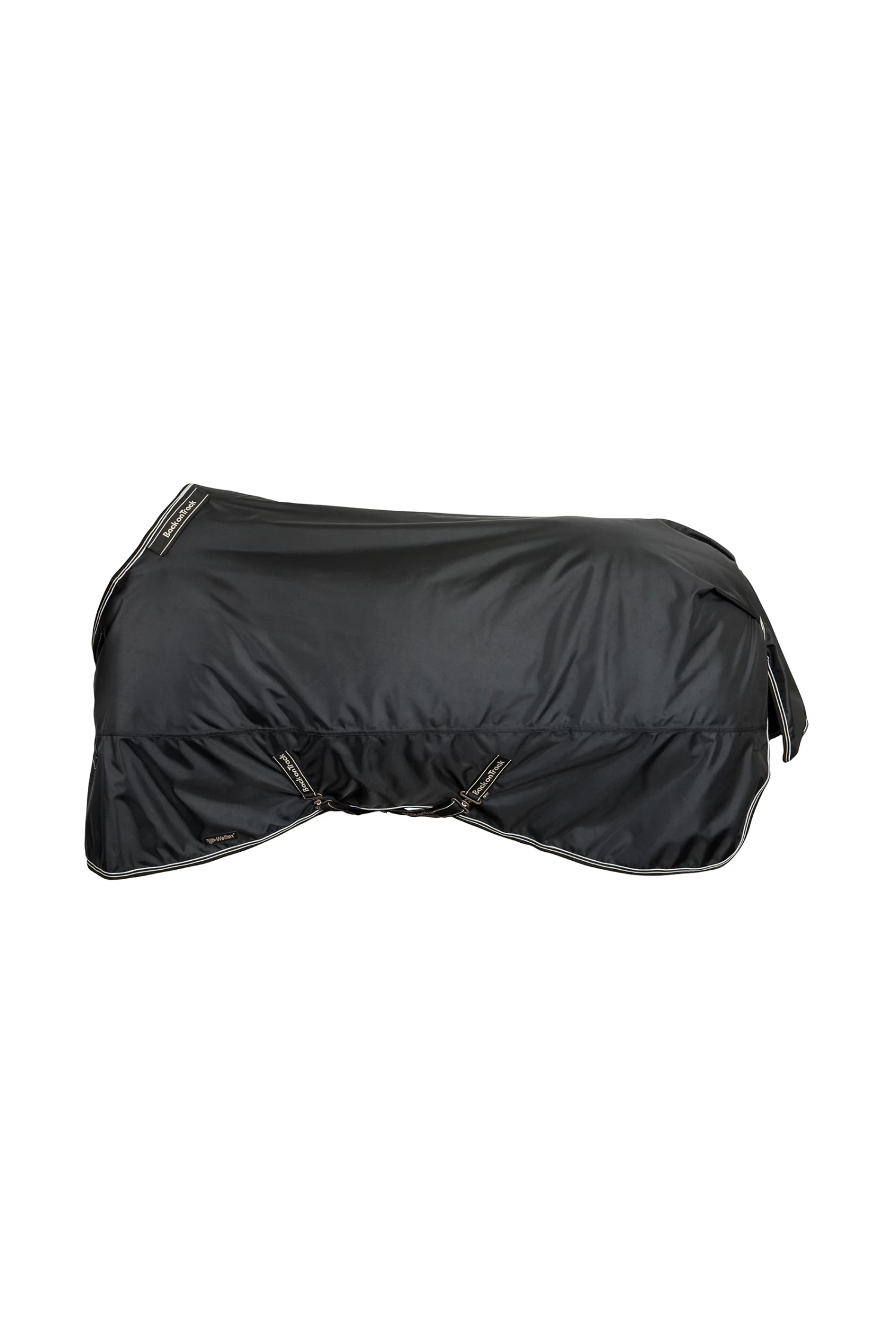 Obsidian ist eine äußerst elegante, multifunktionale Weidedecke mit passendem Halsteil. Die anatomische Passform und die weiche Schaumstoffpolsterung oben auf dem Widerrist heben die Decke leicht an, um den Druck zu mindern und den Komfort zu erhöhen. Die Decke gibt es in drei verschiedenen Ausführungen: die Basisversion ohne Füllung (#345230), eine etwas dickere Version mit 150 g Füllung und eine warme Version mit 300 g Füllung (#345232), die den Anforderungen kalter Winterbedingungen gerecht wird. Sowohl Decke als auch Halsteil bestehen aus einer atmungsaktiven, wasserabweisenden Außenschicht (5000mm-3000gsm) und einer Innenschicht aus gewebtem Welltex®-Gewebe, die dem Fell des Pferdes am nächsten ist. Die glatte Oberfläche des Futters schützt das Fell vor Scheuerstellen, und der Stoff reflektiert die Infrarotenergie intensiv und stark. Durch die große Größe der Decke kann Welltex® seine therapeutische Wirkung auf eine große Fläche des Pferdekörpers ausüben. Obsidian hüllt das Pferd in eine weiche Umarmung, die dazu beitragen kann, die Durchblutung aller großen, wichtigen Muskelgruppen anzuregen – was sie zu einer hervorragenden Wahl vor und nach jeder Aktivität sowie während der Ruhe- und Erholungsphase macht. Die Decke wird durch doppelte Brustschnallen, gekreuzte Gurte und eine kunststoffummantelte Schweifkordel mit D-Ringen an ihrem Platz gehalten. Das Design ermöglicht eine einfache und stabile Befestigung an Back on Track-Linern.