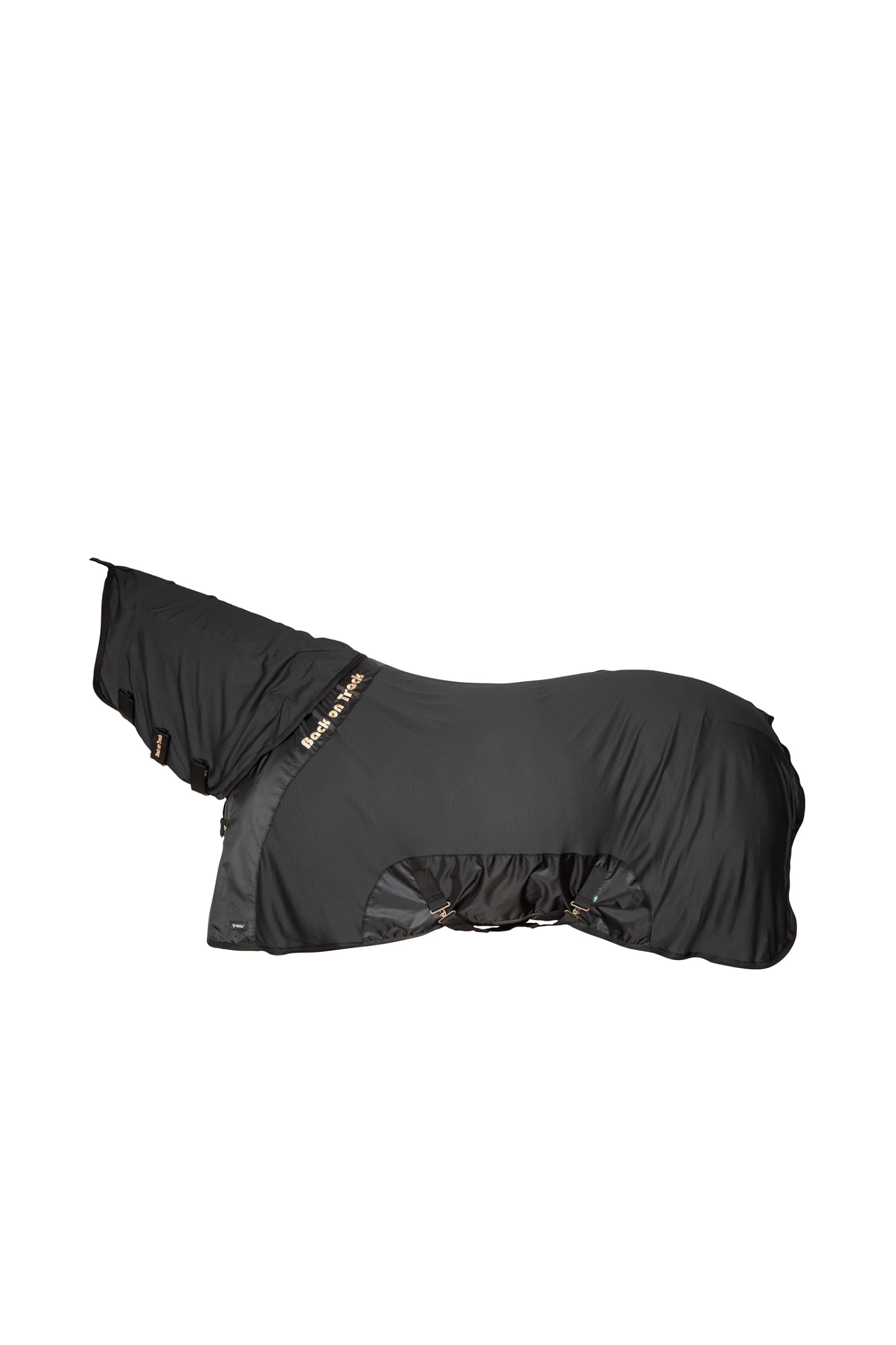 Halsteil für die Royal Mesh Rug Deluxe. Eine perfekte Ergänzung zur Netzdecke, besonders bei kälteren Temperaturen und für Pferde, die im Halsbereich steif sind. Die Halsdecke erweitert den Einsatzbereich der Decke, da sie je nach den momentanen Bedürfnissen des Pferdes verwendet werden kann. Das mit Welltex® durchzogene Futter kann die Blutzirkulation erhöhen und zu einer guten Beweglichkeit der Halsmuskulatur beitragen. Die Halsdecke wird mit flachen Klettverschlüssen einfach an der Decke und am Halfter befestigt. Die Weite lässt sich mit Hilfe von drei Klettverschlüssen im Nacken angepasst werden. Schlaufen unter dem Hals angepasst werden. Das Innenfutter hat ein dichtes gewebten Stoff über der Mähne, um ein Scheuern zu verhindern.