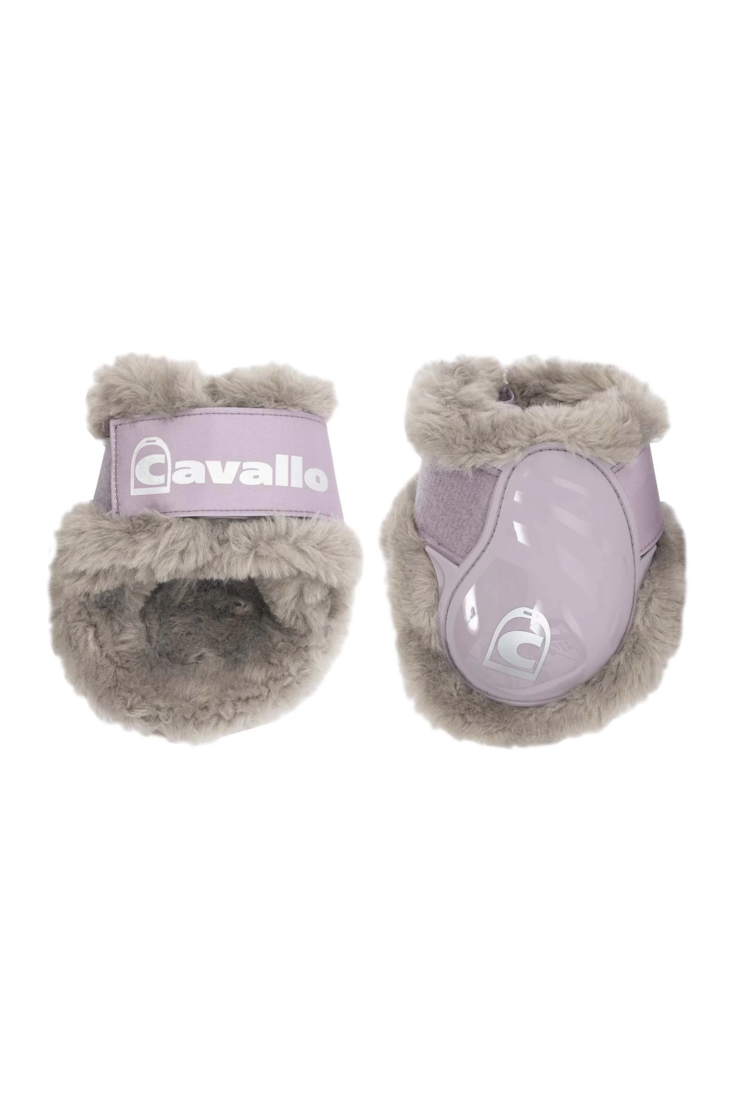 Die Innenseite der Streichkappen sind mit flauschigem Kunstfell gefüttert. Die Streichkappen sind mit einem breiten Gummiband und Flauschband zum Verschließen an der Außenseite versehen. Auf der Oberseite des Klettbandes ist ein großes, silbernes Cavallo Logo aufgedruckt. Die Innenseite der Streichkappe ist mit einem großen Cavallo Steigbügel Logo bedruckt.