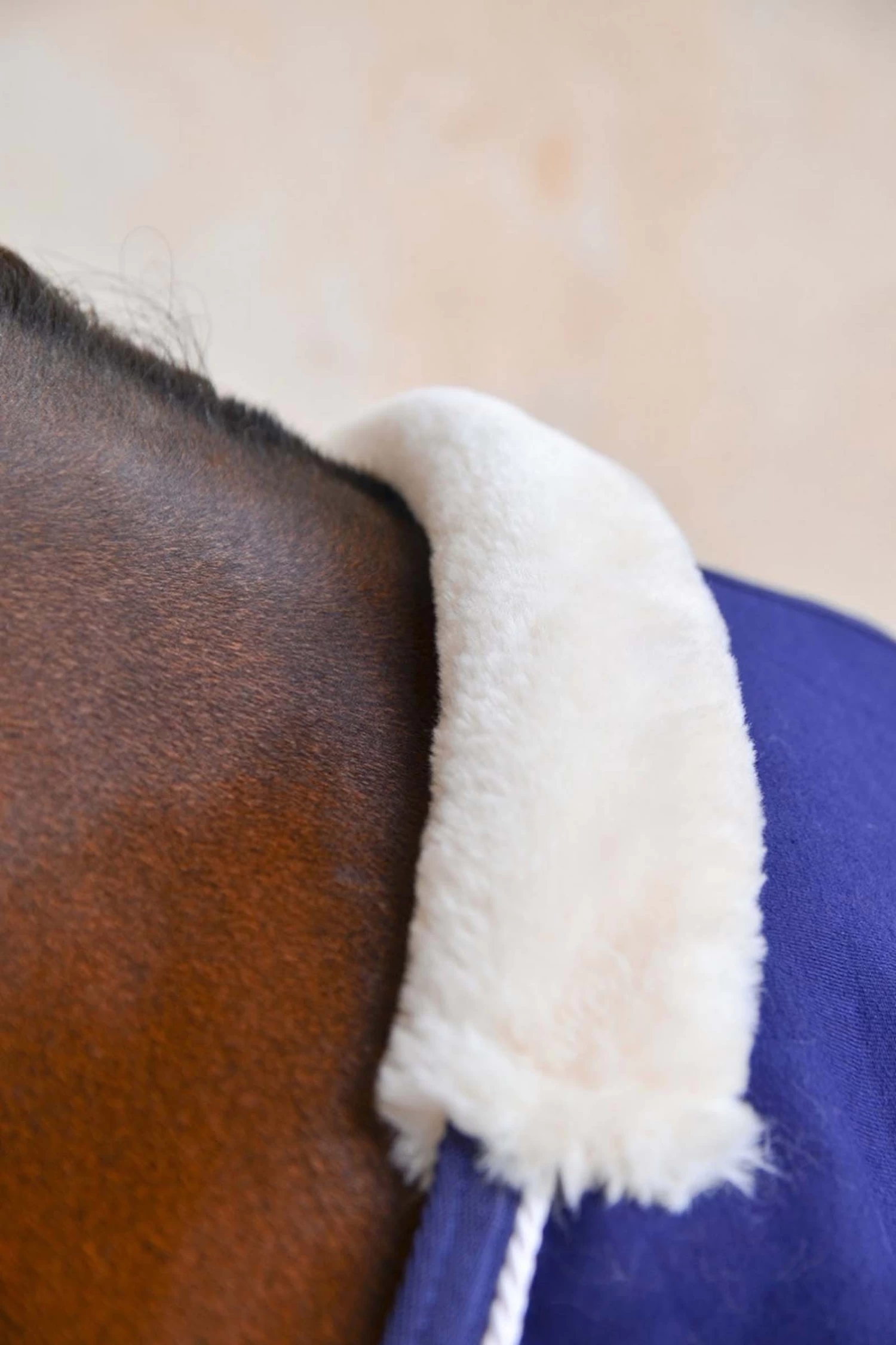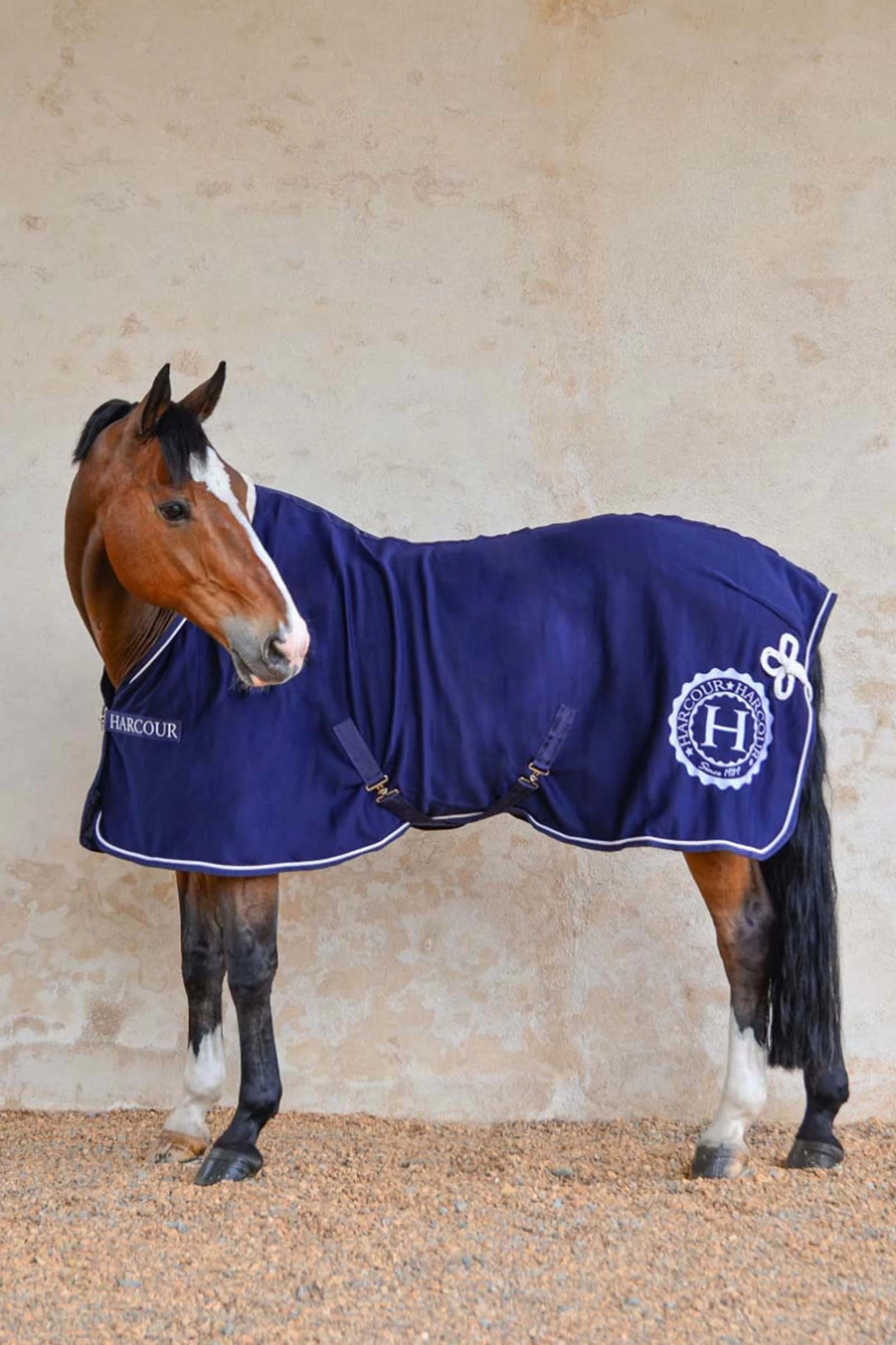 Diese Decke ist aus Monoface-Polarfleece gefertigt. Diese Decke hat eine geflochtene Schweifkordel, 2 abnehmbare Bauchgurte und einen Verschluss für die Pferdebrust. Das künstliche Lammfell am Widerrist sorgt für ein Maximum an Komfort. Diese Pferdedecke ist perfekt, um Wärme zu spenden, aber auch um dein Pferd zu trocknen. Das flache Band mit Hahnentrittmuster und die silberne Harcour-Stickerei auf der linken Seite verleihen der Pferdedecke einen sehr eleganten Look.