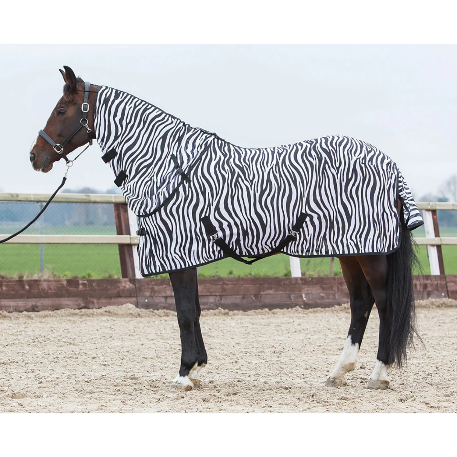 Fliegendecke aus Mesh mit abnehmbarem Halsteil, doppeltem Brustverschluss, doppeltem Halsteilverschluss, Kreuzgurte, Beinschlaufen und Schweiflatz.