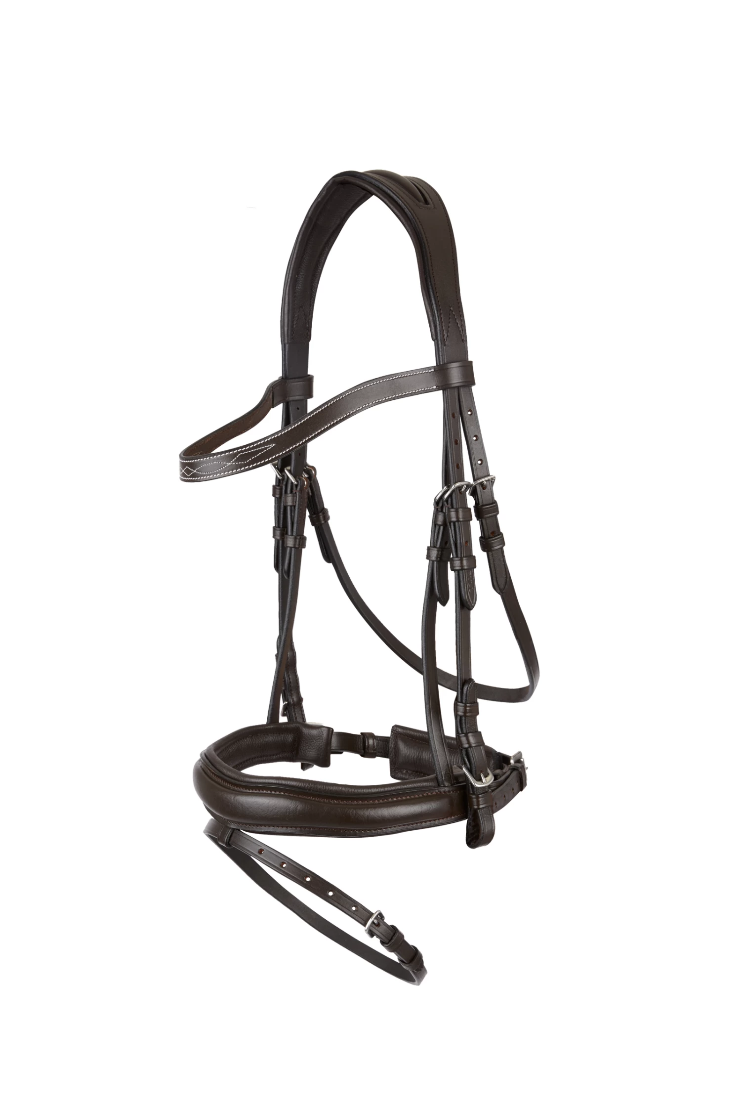 Diese anatomische Trense hat eine gute Passform und ist mit einem bequemen Genick- und Nasenriemen ausgestattet, die sich perfekt an den Kopf deines Pferdes anpassen. Sie sind weich unterlegt, um Druck auf den empfindlichen Gesichtsbereich zu vermeiden. Die verstellbaren Schnallen sorgen für die beste Passform.