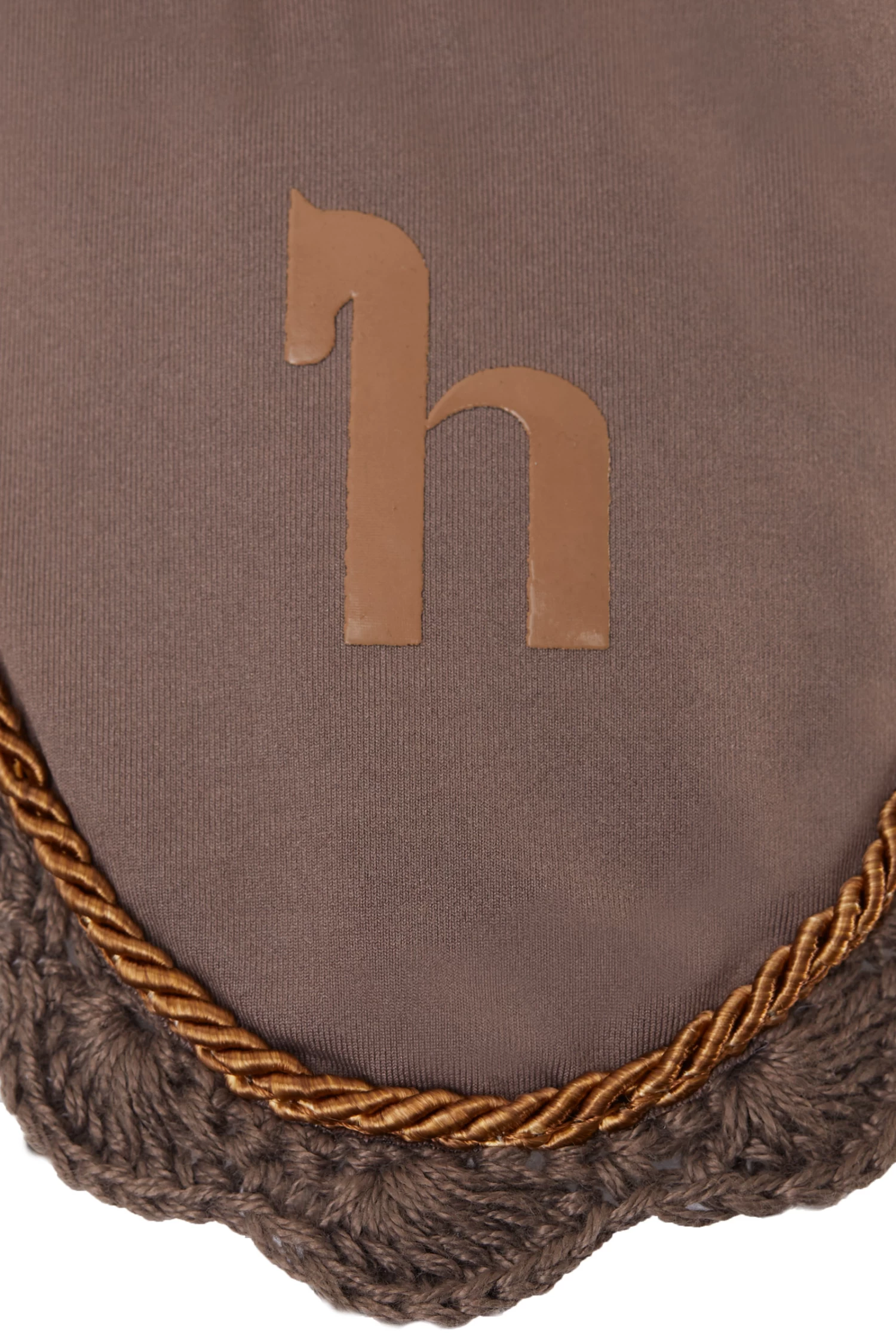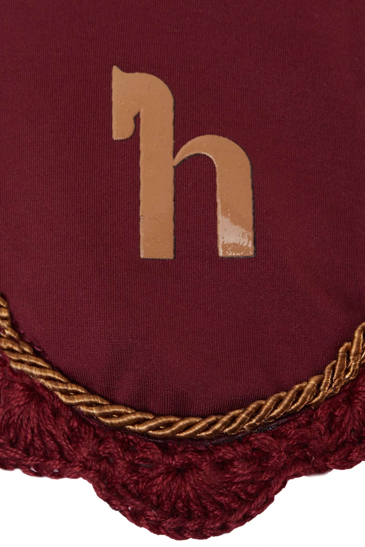 Unsere Horze Kenya Fliegenhaube ist aus weichem Häkelmaterial mit elastischen Ohren, die atmungsaktiv und schnell trocknend sind. Die elegante Kordel sieht zeitlos und hübsch aus. Metallische Akzente sorgen für ein glänzendes Detail. Kombiniere dieses Fliegenhaube mit dem Rest unseres Horze Kenya Sortiments für einen passenden Look!