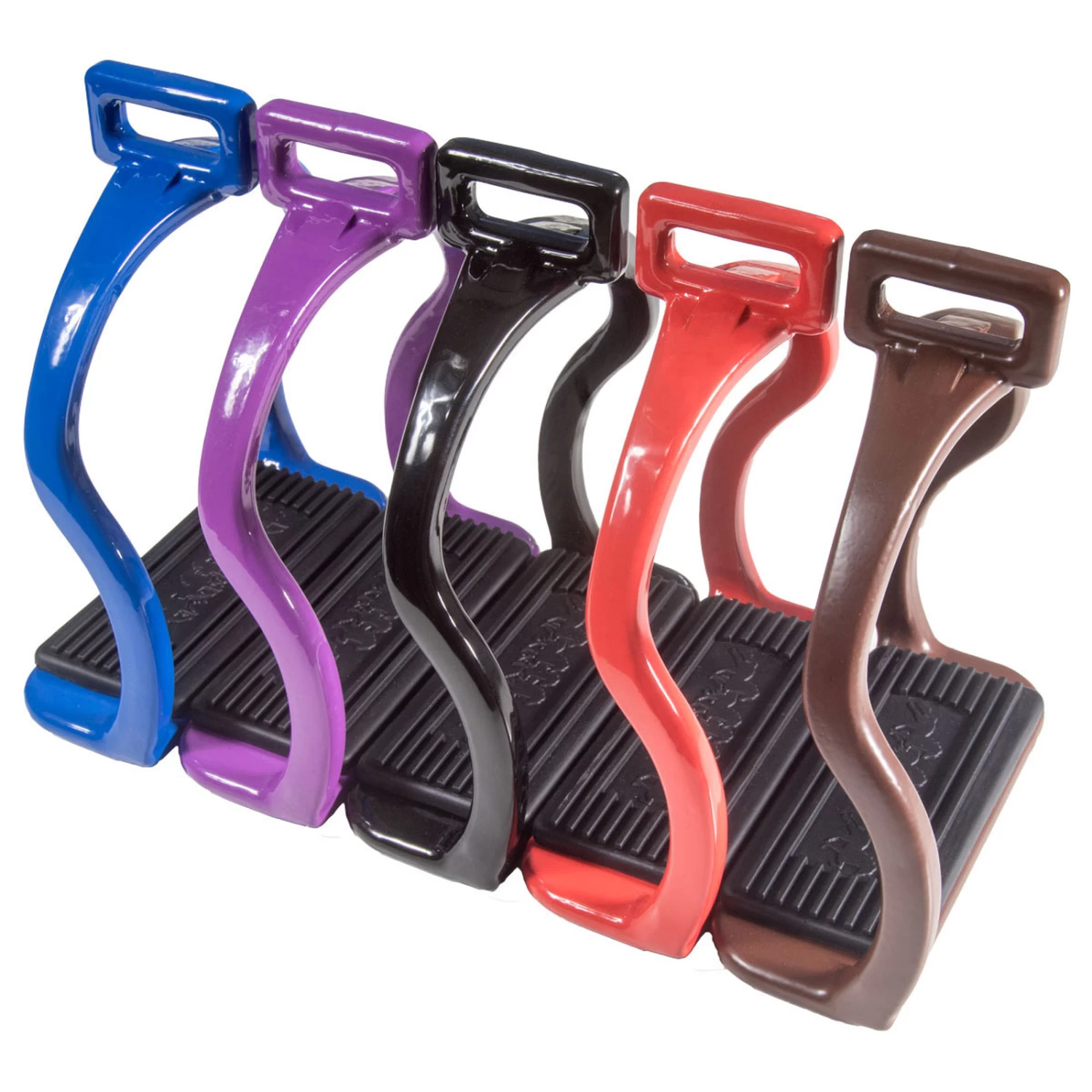 Doppel-S-Sicherheits-Steigbügel aus aluminium. Gummi pads mit töltende Pferde. Einfaches elegantes Design mit geringem Gewicht.