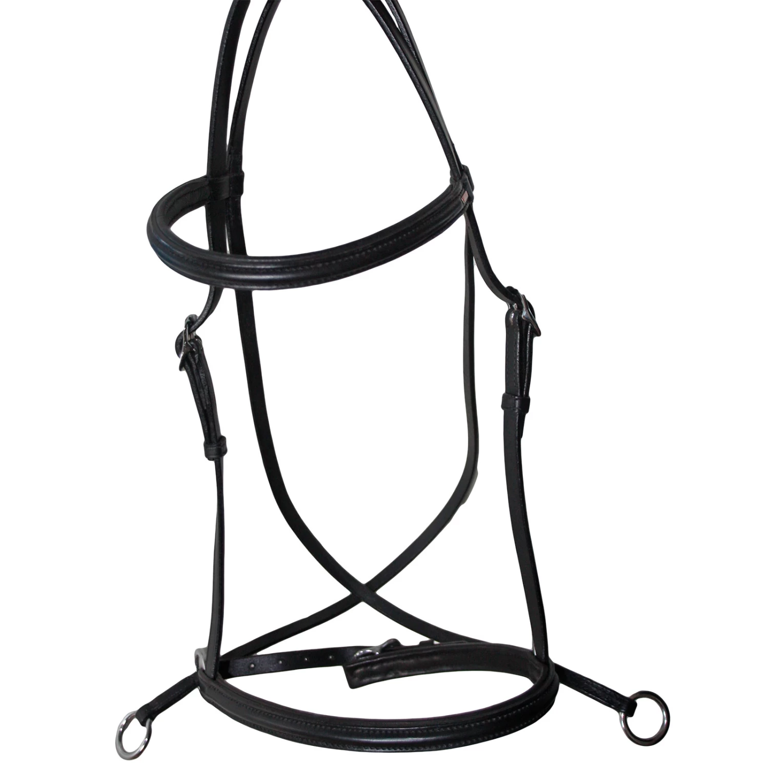 Gebissloser Zaum, mit kreuzenden Riemen am Unterkiefer für einen verbesserten Sidepull-Effekt. Mit weicher Polsterung für mehr Komfort für das Pferd.