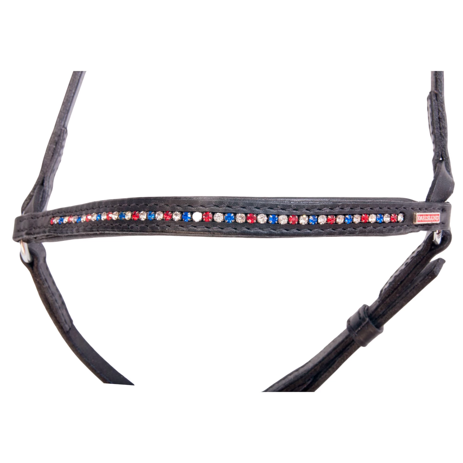 Das „Wave“ Reithalfter hat Kristalle in den Farben Islands. Sehr weich und aus guter Qualität. Verchromte Beschläge.