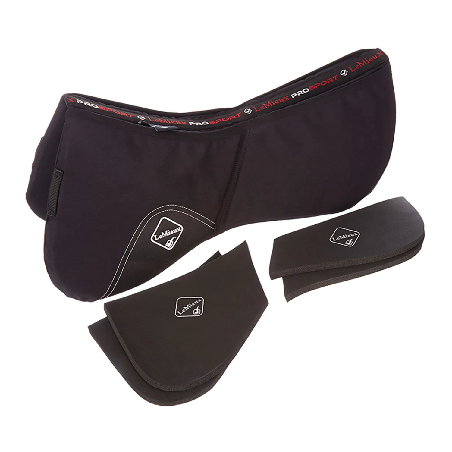 Das LeMieuX Sattelpad bietet die Möglichkeit, die Sattelpassform anzugliechen. Aufgrund der einzeln einlegbaren Pads kann können leichte Sattel-Schwerpunktprobleme gelöst werden, da das Pad sowohl als normales Pad als auch als Front oder Back Raiser eingesetzt werden kann. Dadurch ist dieses Korrekturpad sehr vielfältig. Es ist flexibel einsetzbar, beispielsweise, wenn das Pferd noch in der Entwicklungsphase ist und sich seine Muskulatur verändert oder wenn ein Sattel an verschiedene Pferde angepasst werden soll. Es gewährleistet nicht nur Wirbelsäulenfreiheit, sondern auch Widerristfreiheit. Druck- und Scheuerstellen sind somit ausgechlossen.