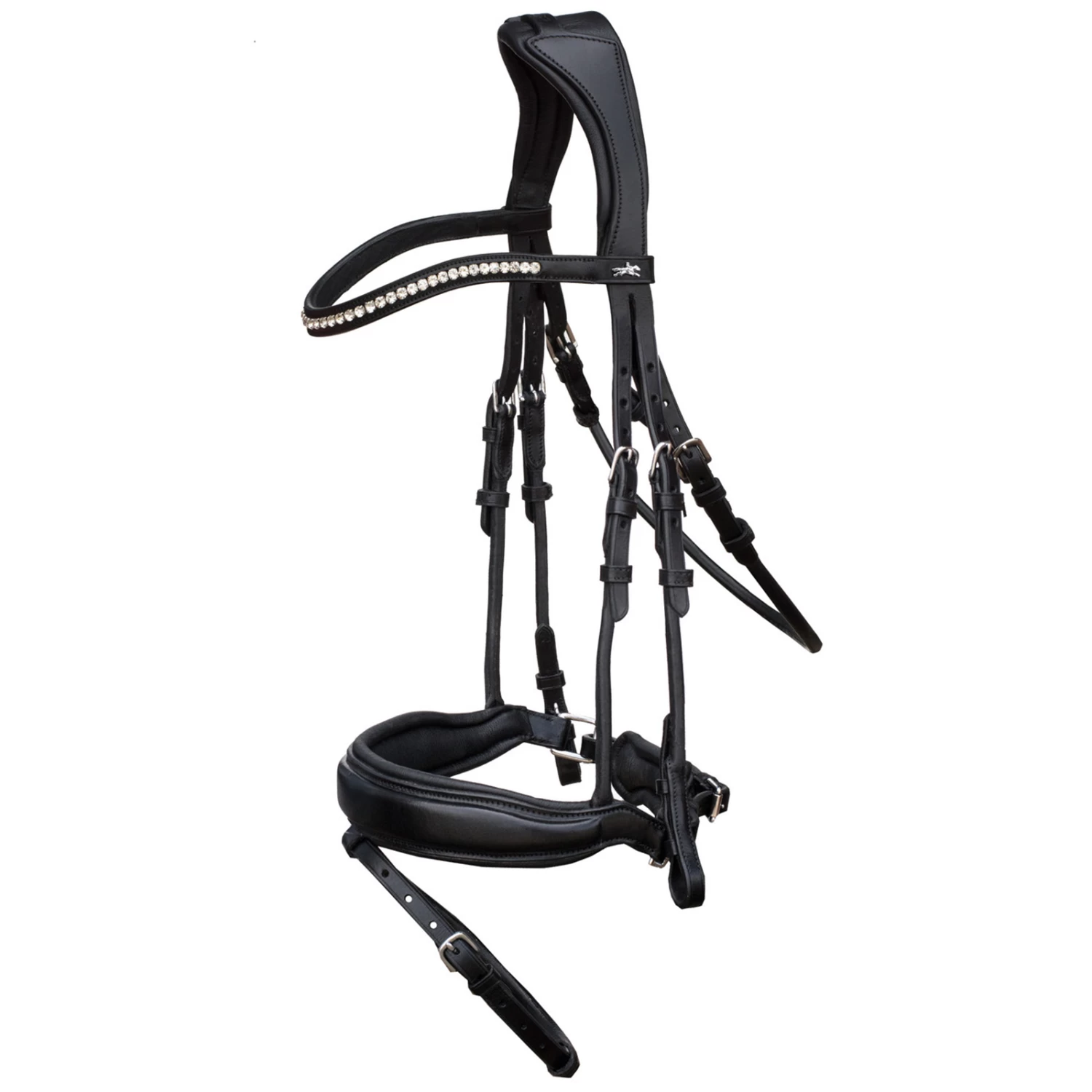 MALIBU ist eine edle halb- rundgenähte Dressur-Trense mit einem anatomisch geformten Spezial-Reithalfter, sowie einzigartigem Genickstück, das speziell an die Anatomie des Pferdes angepasst ist. Der Druck wird in den empfindlichen Zonen wie Jochbein und Genick deutlich gemindert, während gleichzeitig ein uneingeschränktes Ohrenspiel ermöglicht wird. Der Komfort für das Pferd wird dadurch erheblich maximiert.