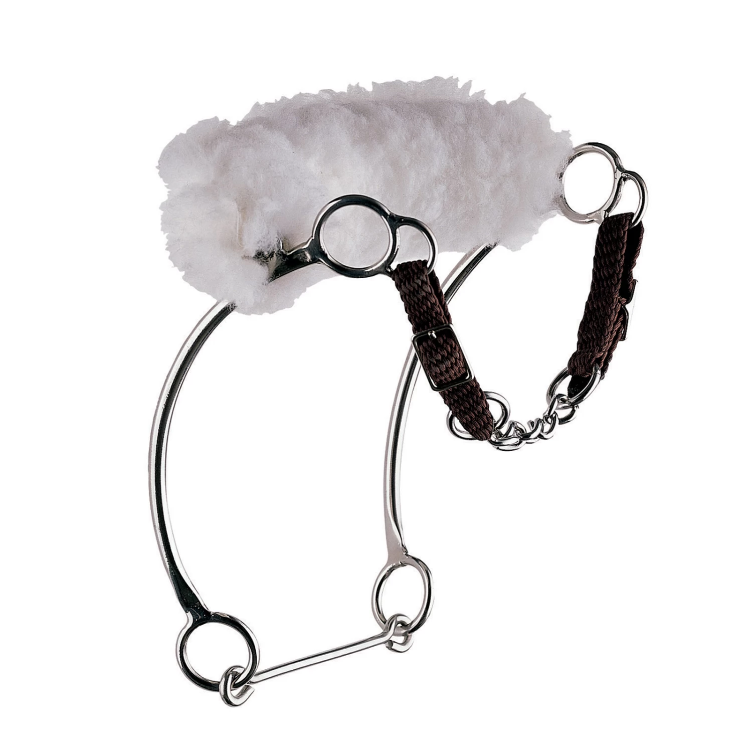Bei dem Kombi-Hackamore hat der Reiter die Möglichkeit zusätzlich ein Gebiss einzuschnallen m die beizäumende Wirkung des Hackamores zu verstärken.