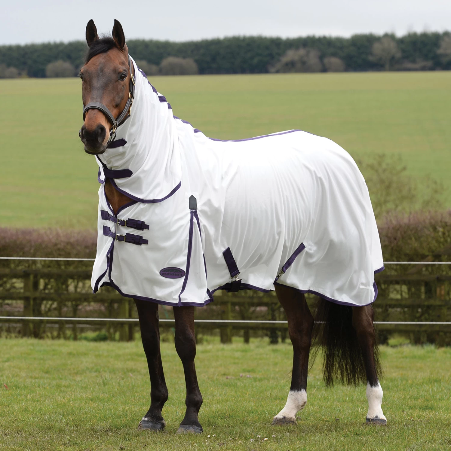 The WeatherBeeta ComFiTec Essential Mesh II offers a classic style at a great price. Produced from soft mesh, this fly protection has a 210T nylon lining at the shoulders, mane and tail. It features twin adjustable buckle front closure with touch tape, traditional side gusset for natural movement, low cross surcingles, large tail flap and adjustable removable leg straps . Offers 65% UV Block.